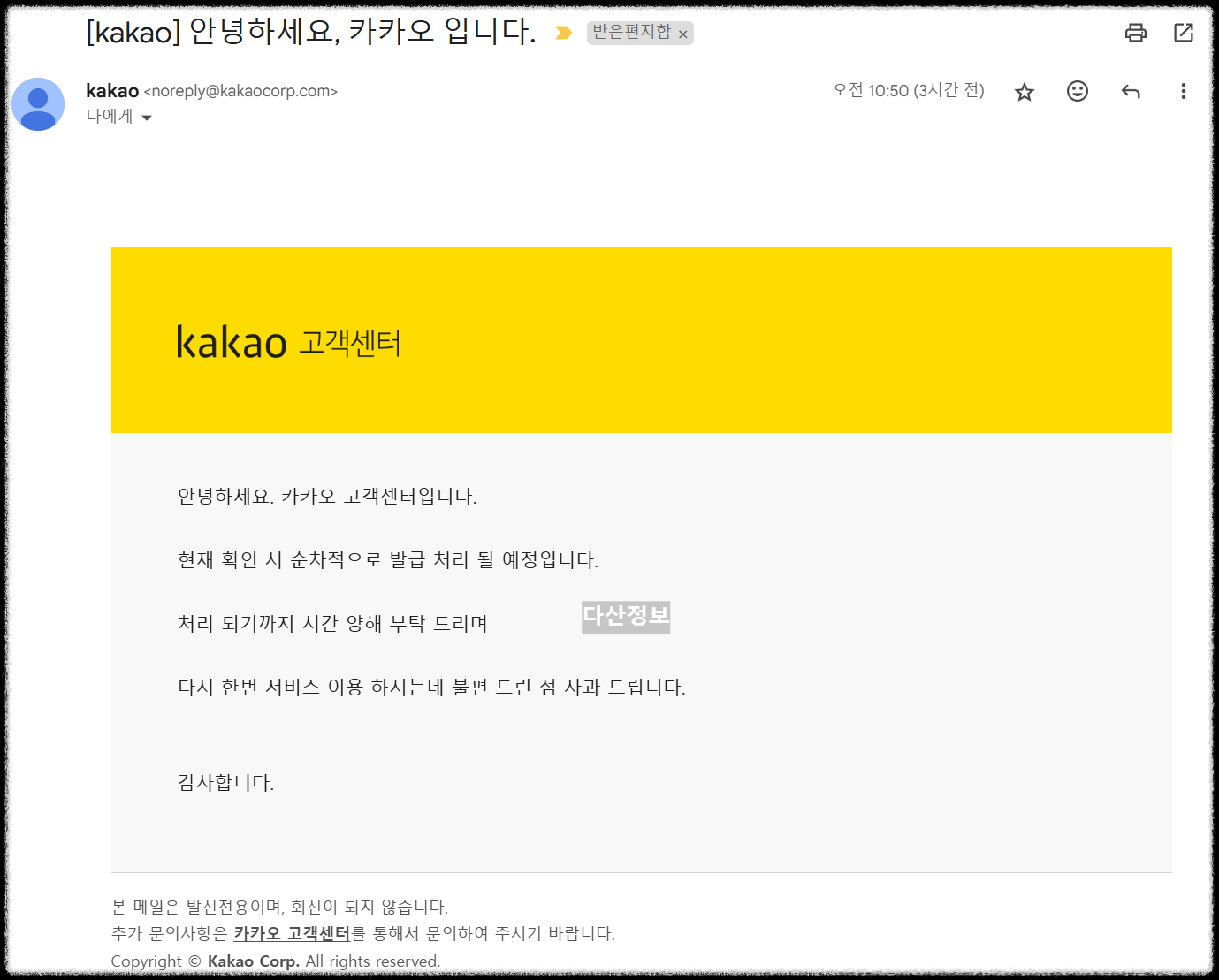 답장 메일이 왔습니다